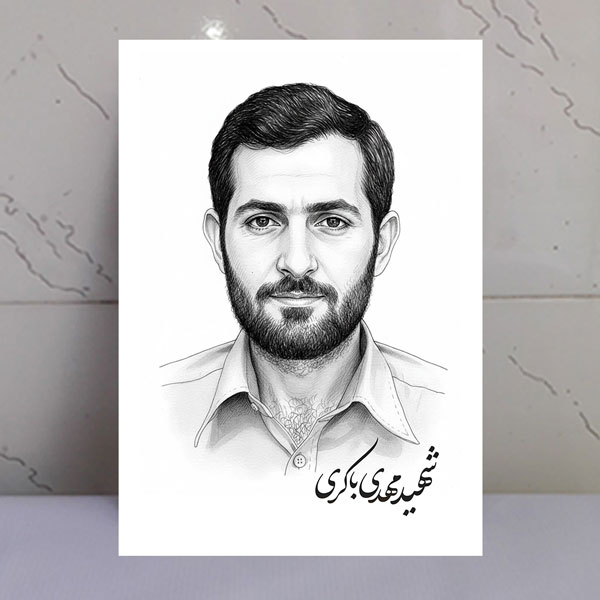 قاب شاسی بسیار زیبای شهید مهدی باکری نقاشی خطی
