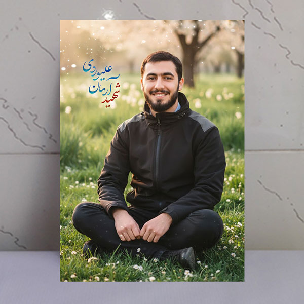 ☑️ خرید قاب شاسی شهید آرمان علیوردی با زمینه طبیعت - شهدا مارکت