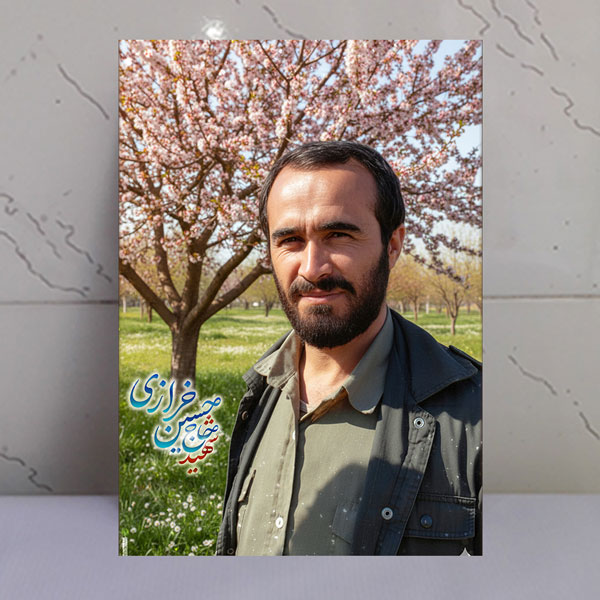 ☑️ خرید قاب شاسی شهید حاج حسین خرازی طرح بهاری - شهدا مارکت