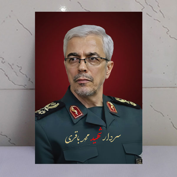 ☑️ خرید قاب شاسی شهید سردار محمد باقری طرح زمینه سرخ - شهدا مارکت