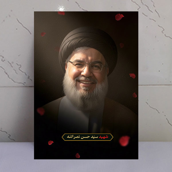 قاب شاسی شهید سید حسن نصرالله با طرح گلبرگ و نور بهشتی