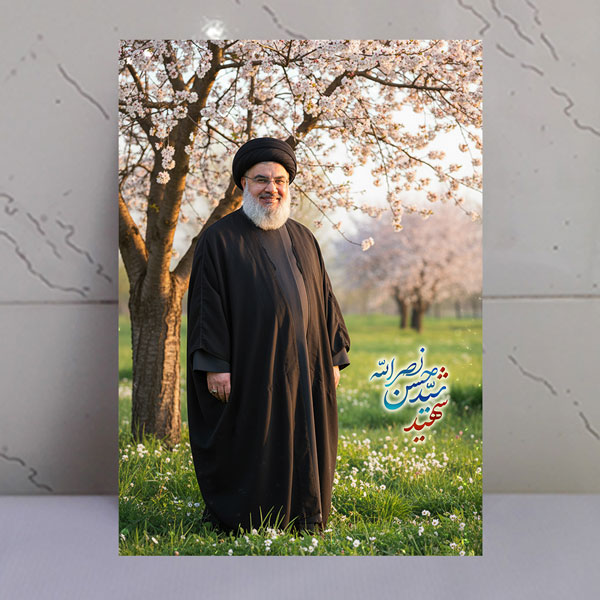 ☑️ خرید قاب شاسی شهید سید حسن نصرالله طرح بهاری - شهدا مارکت