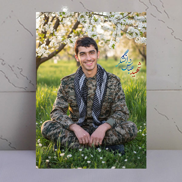 ☑️ خرید قاب شاسی شهید عباس دانشگر با زمینه طبیعت - شهدا مارکت