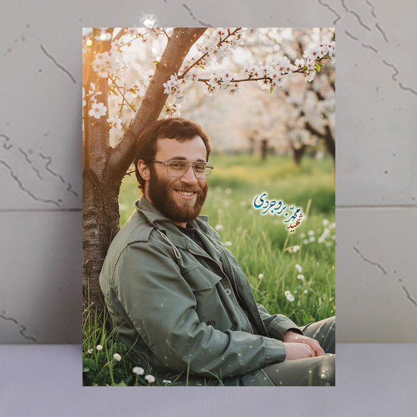 ☑️ خرید قاب شاسی شهید محمد بروجردی طرح باغ و درخت - شهدا مارکت