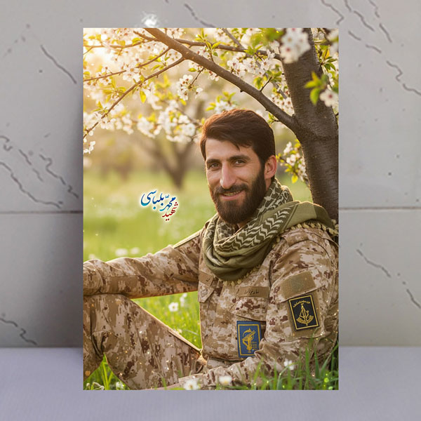 ☑️ خرید قاب شاسی شهید محمد بلباسی طرح باغ و درخت - شهدا مارکت
