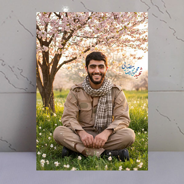 ☑️ خرید قاب شاسی شهید محمودرضا بیضایی با زمینه طبیعت - شهدا مارکت
