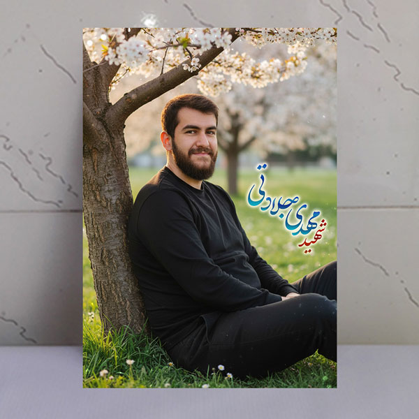 ☑️ خرید قاب شاسی شهید مهدی جلادتی طرح باغ و درخت - شهدا مارکت