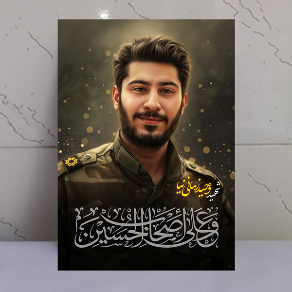 ☑️ خرید قاب شاسی شهید وحید زمانی نیا/ طرح و علی اصحاب الحسین - شهدا مارکت